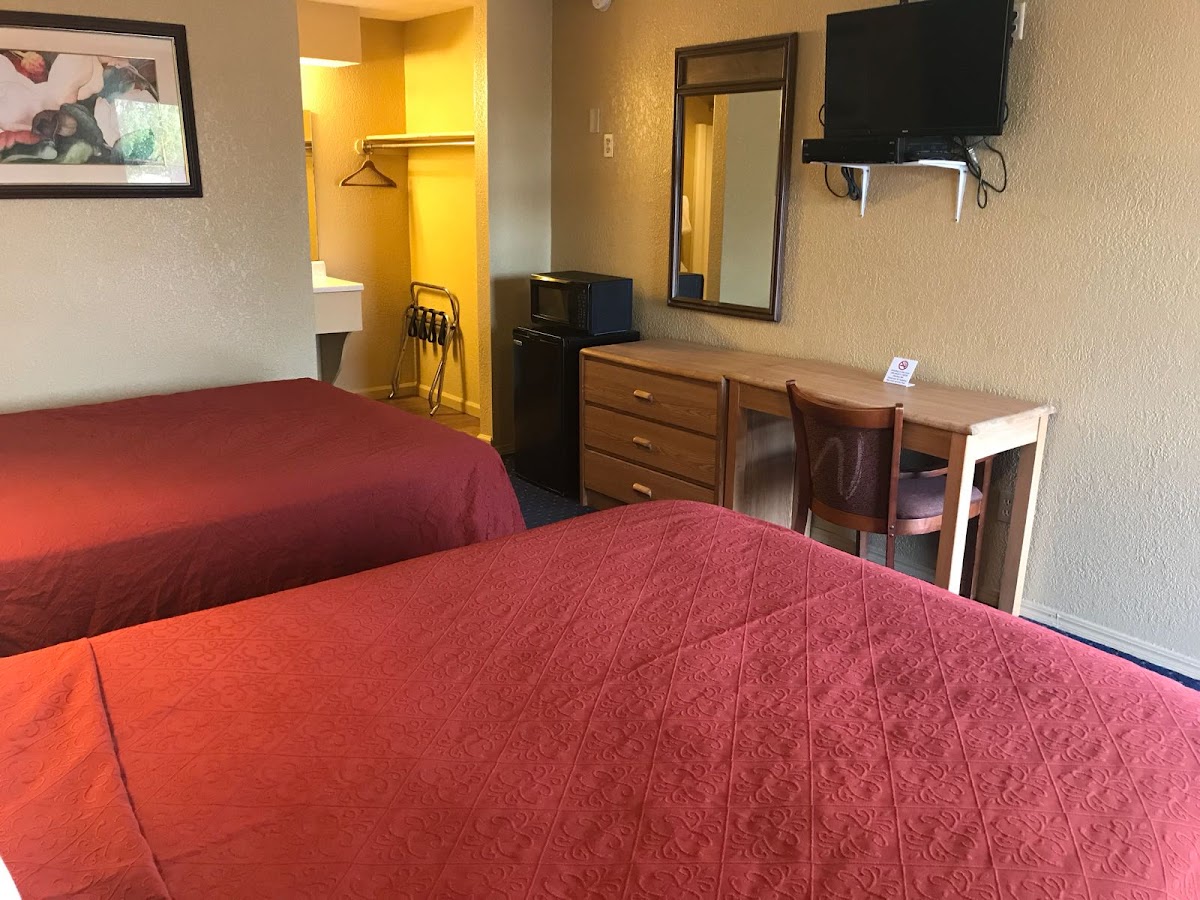 Not a bad spot for the price. The room was very clean (I actually wasn't expecting it to be as clean as it was). The satellite box was a little fussy at first but I was able to get it working by adjusting the cords in the back. They even had a mini fridge & microwave - great value for the money! The only con was the lock on the door which felt flimsy (just a standard keyed lock you'd find on a bedroom door); no deadbolt & no chain style lock typical of these types of motels. Addition of a cheap chain lock (even if it only offers an illusion of safety) may be a wise investment.
